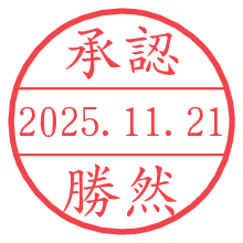 オプションの「電子透かし」をチェックし[生成]すると、見た目には分からないように、UNIXタイムスタンプを識別情報としてPNG形式の日付印に埋め込みます。 日付スタンプメーカーの使い方「部署」「名前」は最大8文字まで入力が可能です。「スタンプの色」を選択し、[生成]ボタン押下で印影画像が更新され、背景を透明に設定したPNG形式とPDF形式の印影画像がリンクからダウンロードできます。 オプションの「電子透かし」は、その性格上日付印ととても相性の良い付加サービスです。 別ページの「タイムスタンプと電子透かし」でも詳しく解説しますが、このオプションを追加することで、日付印が生成された日時に確かにその印が存在していることが証明されます。 ![]() 勝然さんの電子印鑑が作れます。社内でのデータ書類閲覧確認用など、認印的な使い方のできる電子印鑑が作れます。 ![]() 古代文字で落款印が作れます。「落款スタンプメーカー」で作品を引き立たせる落款印が作れます。