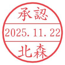 オプションの「電子透かし」をチェックし[生成]すると、見た目には分からないように、UNIXタイムスタンプを識別情報としてPNG形式の日付印に埋め込みます。 日付スタンプメーカーの使い方「部署」「名前」は最大8文字まで入力が可能です。「スタンプの色」を選択し、[生成]ボタン押下で印影画像が更新され、背景を透明に設定したPNG形式とPDF形式の印影画像がリンクからダウンロードできます。 オプションの「電子透かし」は、その性格上日付印ととても相性の良い付加サービスです。 別ページの「タイムスタンプと電子透かし」でも詳しく解説しますが、このオプションを追加することで、日付印が生成された日時に確かにその印が存在していることが証明されます。 ![]() 北森さんの電子印鑑が作れます。社内でのデータ書類閲覧確認用など、認印的な使い方のできる電子印鑑が作れます。 ![]() 古代文字で落款印が作れます。「落款スタンプメーカー」で作品を引き立たせる落款印が作れます。