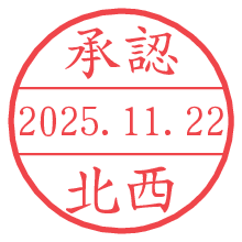 オプションの「電子透かし」をチェックし[生成]すると、見た目には分からないように、UNIXタイムスタンプを識別情報としてPNG形式の日付印に埋め込みます。 日付スタンプメーカーの使い方「部署」「名前」は最大8文字まで入力が可能です。「スタンプの色」を選択し、[生成]ボタン押下で印影画像が更新され、背景を透明に設定したPNG形式とPDF形式の印影画像がリンクからダウンロードできます。 オプションの「電子透かし」は、その性格上日付印ととても相性の良い付加サービスです。 別ページの「タイムスタンプと電子透かし」でも詳しく解説しますが、このオプションを追加することで、日付印が生成された日時に確かにその印が存在していることが証明されます。 ![]() 北西さんの電子印鑑が作れます。社内でのデータ書類閲覧確認用など、認印的な使い方のできる電子印鑑が作れます。 ![]() 古代文字で落款印が作れます。「落款スタンプメーカー」で作品を引き立たせる落款印が作れます。