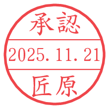 オプションの「電子透かし」をチェックし[生成]すると、見た目には分からないように、UNIXタイムスタンプを識別情報としてPNG形式の日付印に埋め込みます。 日付スタンプメーカーの使い方「部署」「名前」は最大8文字まで入力が可能です。「スタンプの色」を選択し、[生成]ボタン押下で印影画像が更新され、背景を透明に設定したPNG形式とPDF形式の印影画像がリンクからダウンロードできます。 オプションの「電子透かし」は、その性格上日付印ととても相性の良い付加サービスです。 別ページの「タイムスタンプと電子透かし」でも詳しく解説しますが、このオプションを追加することで、日付印が生成された日時に確かにその印が存在していることが証明されます。 ![]() 匠原さんの電子印鑑が作れます。社内でのデータ書類閲覧確認用など、認印的な使い方のできる電子印鑑が作れます。 ![]() 古代文字で落款印が作れます。「落款スタンプメーカー」で作品を引き立たせる落款印が作れます。