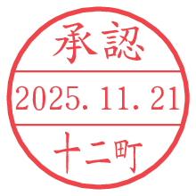 オプションの「電子透かし」をチェックし[生成]すると、見た目には分からないように、UNIXタイムスタンプを識別情報としてPNG形式の日付印に埋め込みます。 日付スタンプメーカーの使い方「部署」「名前」は最大8文字まで入力が可能です。「スタンプの色」を選択し、[生成]ボタン押下で印影画像が更新され、背景を透明に設定したPNG形式とPDF形式の印影画像がリンクからダウンロードできます。 オプションの「電子透かし」は、その性格上日付印ととても相性の良い付加サービスです。 別ページの「タイムスタンプと電子透かし」でも詳しく解説しますが、このオプションを追加することで、日付印が生成された日時に確かにその印が存在していることが証明されます。 ![]() 十二町さんの電子印鑑が作れます。社内でのデータ書類閲覧確認用など、認印的な使い方のできる電子印鑑が作れます。 ![]() 古代文字で落款印が作れます。「落款スタンプメーカー」で作品を引き立たせる落款印が作れます。