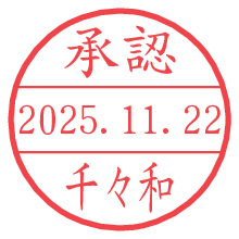オプションの「電子透かし」をチェックし[生成]すると、見た目には分からないように、UNIXタイムスタンプを識別情報としてPNG形式の日付印に埋め込みます。 日付スタンプメーカーの使い方「部署」「名前」は最大8文字まで入力が可能です。「スタンプの色」を選択し、[生成]ボタン押下で印影画像が更新され、背景を透明に設定したPNG形式とPDF形式の印影画像がリンクからダウンロードできます。 オプションの「電子透かし」は、その性格上日付印ととても相性の良い付加サービスです。 別ページの「タイムスタンプと電子透かし」でも詳しく解説しますが、このオプションを追加することで、日付印が生成された日時に確かにその印が存在していることが証明されます。 ![]() 千々和さんの電子印鑑が作れます。社内でのデータ書類閲覧確認用など、認印的な使い方のできる電子印鑑が作れます。 ![]() 古代文字で落款印が作れます。「落款スタンプメーカー」で作品を引き立たせる落款印が作れます。