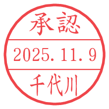 オプションの「電子透かし」をチェックし[生成]すると、見た目には分からないように、UNIXタイムスタンプを識別情報としてPNG形式の日付印に埋め込みます。 日付スタンプメーカーの使い方「部署」「名前」は最大8文字まで入力が可能です。「スタンプの色」を選択し、[生成]ボタン押下で印影画像が更新され、背景を透明に設定したPNG形式とPDF形式の印影画像がリンクからダウンロードできます。 オプションの「電子透かし」は、その性格上日付印ととても相性の良い付加サービスです。 別ページの「タイムスタンプと電子透かし」でも詳しく解説しますが、このオプションを追加することで、日付印が生成された日時に確かにその印が存在していることが証明されます。 ![]() 千代川さんの電子印鑑が作れます。社内でのデータ書類閲覧確認用など、認印的な使い方のできる電子印鑑が作れます。 ![]() 古代文字で落款印が作れます。「落款スタンプメーカー」で作品を引き立たせる落款印が作れます。