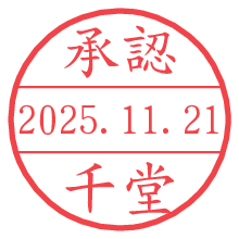 オプションの「電子透かし」をチェックし[生成]すると、見た目には分からないように、UNIXタイムスタンプを識別情報としてPNG形式の日付印に埋め込みます。 日付スタンプメーカーの使い方「部署」「名前」は最大8文字まで入力が可能です。「スタンプの色」を選択し、[生成]ボタン押下で印影画像が更新され、背景を透明に設定したPNG形式とPDF形式の印影画像がリンクからダウンロードできます。 オプションの「電子透かし」は、その性格上日付印ととても相性の良い付加サービスです。 別ページの「タイムスタンプと電子透かし」でも詳しく解説しますが、このオプションを追加することで、日付印が生成された日時に確かにその印が存在していることが証明されます。 ![]() 千堂さんの電子印鑑が作れます。社内でのデータ書類閲覧確認用など、認印的な使い方のできる電子印鑑が作れます。 ![]() 古代文字で落款印が作れます。「落款スタンプメーカー」で作品を引き立たせる落款印が作れます。