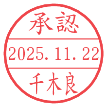 オプションの「電子透かし」をチェックし[生成]すると、見た目には分からないように、UNIXタイムスタンプを識別情報としてPNG形式の日付印に埋め込みます。 日付スタンプメーカーの使い方「部署」「名前」は最大8文字まで入力が可能です。「スタンプの色」を選択し、[生成]ボタン押下で印影画像が更新され、背景を透明に設定したPNG形式とPDF形式の印影画像がリンクからダウンロードできます。 オプションの「電子透かし」は、その性格上日付印ととても相性の良い付加サービスです。 別ページの「タイムスタンプと電子透かし」でも詳しく解説しますが、このオプションを追加することで、日付印が生成された日時に確かにその印が存在していることが証明されます。 ![]() 千木良さんの電子印鑑が作れます。社内でのデータ書類閲覧確認用など、認印的な使い方のできる電子印鑑が作れます。 ![]() 古代文字で落款印が作れます。「落款スタンプメーカー」で作品を引き立たせる落款印が作れます。