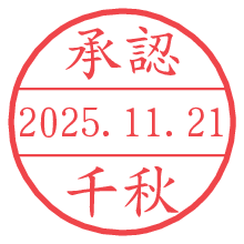 オプションの「電子透かし」をチェックし[生成]すると、見た目には分からないように、UNIXタイムスタンプを識別情報としてPNG形式の日付印に埋め込みます。 日付スタンプメーカーの使い方「部署」「名前」は最大8文字まで入力が可能です。「スタンプの色」を選択し、[生成]ボタン押下で印影画像が更新され、背景を透明に設定したPNG形式とPDF形式の印影画像がリンクからダウンロードできます。 オプションの「電子透かし」は、その性格上日付印ととても相性の良い付加サービスです。 別ページの「タイムスタンプと電子透かし」でも詳しく解説しますが、このオプションを追加することで、日付印が生成された日時に確かにその印が存在していることが証明されます。 ![]() 千秋さんの電子印鑑が作れます。社内でのデータ書類閲覧確認用など、認印的な使い方のできる電子印鑑が作れます。 ![]() 古代文字で落款印が作れます。「落款スタンプメーカー」で作品を引き立たせる落款印が作れます。