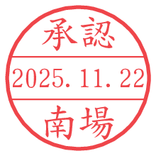 オプションの「電子透かし」をチェックし[生成]すると、見た目には分からないように、UNIXタイムスタンプを識別情報としてPNG形式の日付印に埋め込みます。 日付スタンプメーカーの使い方「部署」「名前」は最大8文字まで入力が可能です。「スタンプの色」を選択し、[生成]ボタン押下で印影画像が更新され、背景を透明に設定したPNG形式とPDF形式の印影画像がリンクからダウンロードできます。 オプションの「電子透かし」は、その性格上日付印ととても相性の良い付加サービスです。 別ページの「タイムスタンプと電子透かし」でも詳しく解説しますが、このオプションを追加することで、日付印が生成された日時に確かにその印が存在していることが証明されます。 ![]() 南場さんの電子印鑑が作れます。社内でのデータ書類閲覧確認用など、認印的な使い方のできる電子印鑑が作れます。 ![]() 古代文字で落款印が作れます。「落款スタンプメーカー」で作品を引き立たせる落款印が作れます。