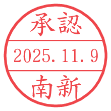 オプションの「電子透かし」をチェックし[生成]すると、見た目には分からないように、UNIXタイムスタンプを識別情報としてPNG形式の日付印に埋め込みます。 日付スタンプメーカーの使い方「部署」「名前」は最大8文字まで入力が可能です。「スタンプの色」を選択し、[生成]ボタン押下で印影画像が更新され、背景を透明に設定したPNG形式とPDF形式の印影画像がリンクからダウンロードできます。 オプションの「電子透かし」は、その性格上日付印ととても相性の良い付加サービスです。 別ページの「タイムスタンプと電子透かし」でも詳しく解説しますが、このオプションを追加することで、日付印が生成された日時に確かにその印が存在していることが証明されます。 ![]() 南新さんの電子印鑑が作れます。社内でのデータ書類閲覧確認用など、認印的な使い方のできる電子印鑑が作れます。 ![]() 古代文字で落款印が作れます。「落款スタンプメーカー」で作品を引き立たせる落款印が作れます。