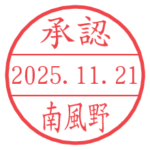 オプションの「電子透かし」をチェックし[生成]すると、見た目には分からないように、UNIXタイムスタンプを識別情報としてPNG形式の日付印に埋め込みます。 日付スタンプメーカーの使い方「部署」「名前」は最大8文字まで入力が可能です。「スタンプの色」を選択し、[生成]ボタン押下で印影画像が更新され、背景を透明に設定したPNG形式とPDF形式の印影画像がリンクからダウンロードできます。 オプションの「電子透かし」は、その性格上日付印ととても相性の良い付加サービスです。 別ページの「タイムスタンプと電子透かし」でも詳しく解説しますが、このオプションを追加することで、日付印が生成された日時に確かにその印が存在していることが証明されます。 ![]() 南風野さんの電子印鑑が作れます。社内でのデータ書類閲覧確認用など、認印的な使い方のできる電子印鑑が作れます。 ![]() 古代文字で落款印が作れます。「落款スタンプメーカー」で作品を引き立たせる落款印が作れます。