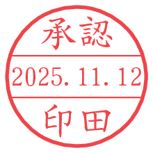 オプションの「電子透かし」をチェックし[生成]すると、見た目には分からないように、UNIXタイムスタンプを識別情報としてPNG形式の日付印に埋め込みます。 日付スタンプメーカーの使い方「部署」「名前」は最大8文字まで入力が可能です。「スタンプの色」を選択し、[生成]ボタン押下で印影画像が更新され、背景を透明に設定したPNG形式とPDF形式の印影画像がリンクからダウンロードできます。 オプションの「電子透かし」は、その性格上日付印ととても相性の良い付加サービスです。 別ページの「タイムスタンプと電子透かし」でも詳しく解説しますが、このオプションを追加することで、日付印が生成された日時に確かにその印が存在していることが証明されます。 ![]() 印田さんの電子印鑑が作れます。社内でのデータ書類閲覧確認用など、認印的な使い方のできる電子印鑑が作れます。 ![]() 古代文字で落款印が作れます。「落款スタンプメーカー」で作品を引き立たせる落款印が作れます。