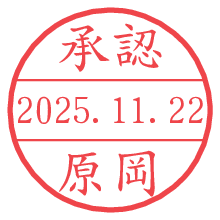 オプションの「電子透かし」をチェックし[生成]すると、見た目には分からないように、UNIXタイムスタンプを識別情報としてPNG形式の日付印に埋め込みます。 日付スタンプメーカーの使い方「部署」「名前」は最大8文字まで入力が可能です。「スタンプの色」を選択し、[生成]ボタン押下で印影画像が更新され、背景を透明に設定したPNG形式とPDF形式の印影画像がリンクからダウンロードできます。 オプションの「電子透かし」は、その性格上日付印ととても相性の良い付加サービスです。 別ページの「タイムスタンプと電子透かし」でも詳しく解説しますが、このオプションを追加することで、日付印が生成された日時に確かにその印が存在していることが証明されます。 ![]() 原岡さんの電子印鑑が作れます。社内でのデータ書類閲覧確認用など、認印的な使い方のできる電子印鑑が作れます。 ![]() 古代文字で落款印が作れます。「落款スタンプメーカー」で作品を引き立たせる落款印が作れます。