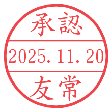 オプションの「電子透かし」をチェックし[生成]すると、見た目には分からないように、UNIXタイムスタンプを識別情報としてPNG形式の日付印に埋め込みます。 日付スタンプメーカーの使い方「部署」「名前」は最大8文字まで入力が可能です。「スタンプの色」を選択し、[生成]ボタン押下で印影画像が更新され、背景を透明に設定したPNG形式とPDF形式の印影画像がリンクからダウンロードできます。 オプションの「電子透かし」は、その性格上日付印ととても相性の良い付加サービスです。 別ページの「タイムスタンプと電子透かし」でも詳しく解説しますが、このオプションを追加することで、日付印が生成された日時に確かにその印が存在していることが証明されます。 ![]() 友常さんの電子印鑑が作れます。社内でのデータ書類閲覧確認用など、認印的な使い方のできる電子印鑑が作れます。 ![]() 古代文字で落款印が作れます。「落款スタンプメーカー」で作品を引き立たせる落款印が作れます。