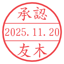 オプションの「電子透かし」をチェックし[生成]すると、見た目には分からないように、UNIXタイムスタンプを識別情報としてPNG形式の日付印に埋め込みます。 日付スタンプメーカーの使い方「部署」「名前」は最大8文字まで入力が可能です。「スタンプの色」を選択し、[生成]ボタン押下で印影画像が更新され、背景を透明に設定したPNG形式とPDF形式の印影画像がリンクからダウンロードできます。 オプションの「電子透かし」は、その性格上日付印ととても相性の良い付加サービスです。 別ページの「タイムスタンプと電子透かし」でも詳しく解説しますが、このオプションを追加することで、日付印が生成された日時に確かにその印が存在していることが証明されます。 ![]() 友木さんの電子印鑑が作れます。社内でのデータ書類閲覧確認用など、認印的な使い方のできる電子印鑑が作れます。 ![]() 古代文字で落款印が作れます。「落款スタンプメーカー」で作品を引き立たせる落款印が作れます。