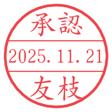 オプションの「電子透かし」をチェックし[生成]すると、見た目には分からないように、UNIXタイムスタンプを識別情報としてPNG形式の日付印に埋め込みます。 日付スタンプメーカーの使い方「部署」「名前」は最大8文字まで入力が可能です。「スタンプの色」を選択し、[生成]ボタン押下で印影画像が更新され、背景を透明に設定したPNG形式とPDF形式の印影画像がリンクからダウンロードできます。 オプションの「電子透かし」は、その性格上日付印ととても相性の良い付加サービスです。 別ページの「タイムスタンプと電子透かし」でも詳しく解説しますが、このオプションを追加することで、日付印が生成された日時に確かにその印が存在していることが証明されます。 ![]() 友枝さんの電子印鑑が作れます。社内でのデータ書類閲覧確認用など、認印的な使い方のできる電子印鑑が作れます。 ![]() 古代文字で落款印が作れます。「落款スタンプメーカー」で作品を引き立たせる落款印が作れます。