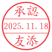 オプションの「電子透かし」をチェックし[生成]すると、見た目には分からないように、UNIXタイムスタンプを識別情報としてPNG形式の日付印に埋め込みます。 日付スタンプメーカーの使い方「部署」「名前」は最大8文字まで入力が可能です。「スタンプの色」を選択し、[生成]ボタン押下で印影画像が更新され、背景を透明に設定したPNG形式とPDF形式の印影画像がリンクからダウンロードできます。 オプションの「電子透かし」は、その性格上日付印ととても相性の良い付加サービスです。 別ページの「タイムスタンプと電子透かし」でも詳しく解説しますが、このオプションを追加することで、日付印が生成された日時に確かにその印が存在していることが証明されます。 ![]() 友添さんの電子印鑑が作れます。社内でのデータ書類閲覧確認用など、認印的な使い方のできる電子印鑑が作れます。 ![]() 古代文字で落款印が作れます。「落款スタンプメーカー」で作品を引き立たせる落款印が作れます。