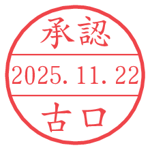 オプションの「電子透かし」をチェックし[生成]すると、見た目には分からないように、UNIXタイムスタンプを識別情報としてPNG形式の日付印に埋め込みます。 日付スタンプメーカーの使い方「部署」「名前」は最大8文字まで入力が可能です。「スタンプの色」を選択し、[生成]ボタン押下で印影画像が更新され、背景を透明に設定したPNG形式とPDF形式の印影画像がリンクからダウンロードできます。 オプションの「電子透かし」は、その性格上日付印ととても相性の良い付加サービスです。 別ページの「タイムスタンプと電子透かし」でも詳しく解説しますが、このオプションを追加することで、日付印が生成された日時に確かにその印が存在していることが証明されます。 ![]() 古口さんの電子印鑑が作れます。社内でのデータ書類閲覧確認用など、認印的な使い方のできる電子印鑑が作れます。 ![]() 古代文字で落款印が作れます。「落款スタンプメーカー」で作品を引き立たせる落款印が作れます。