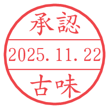オプションの「電子透かし」をチェックし[生成]すると、見た目には分からないように、UNIXタイムスタンプを識別情報としてPNG形式の日付印に埋め込みます。 日付スタンプメーカーの使い方「部署」「名前」は最大8文字まで入力が可能です。「スタンプの色」を選択し、[生成]ボタン押下で印影画像が更新され、背景を透明に設定したPNG形式とPDF形式の印影画像がリンクからダウンロードできます。 オプションの「電子透かし」は、その性格上日付印ととても相性の良い付加サービスです。 別ページの「タイムスタンプと電子透かし」でも詳しく解説しますが、このオプションを追加することで、日付印が生成された日時に確かにその印が存在していることが証明されます。 ![]() 古味さんの電子印鑑が作れます。社内でのデータ書類閲覧確認用など、認印的な使い方のできる電子印鑑が作れます。 ![]() 古代文字で落款印が作れます。「落款スタンプメーカー」で作品を引き立たせる落款印が作れます。