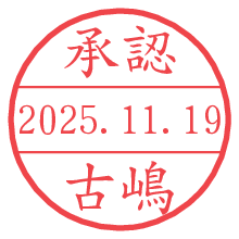 オプションの「電子透かし」をチェックし[生成]すると、見た目には分からないように、UNIXタイムスタンプを識別情報としてPNG形式の日付印に埋め込みます。 日付スタンプメーカーの使い方「部署」「名前」は最大8文字まで入力が可能です。「スタンプの色」を選択し、[生成]ボタン押下で印影画像が更新され、背景を透明に設定したPNG形式とPDF形式の印影画像がリンクからダウンロードできます。 オプションの「電子透かし」は、その性格上日付印ととても相性の良い付加サービスです。 別ページの「タイムスタンプと電子透かし」でも詳しく解説しますが、このオプションを追加することで、日付印が生成された日時に確かにその印が存在していることが証明されます。 ![]() 古嶋さんの電子印鑑が作れます。社内でのデータ書類閲覧確認用など、認印的な使い方のできる電子印鑑が作れます。 ![]() 古代文字で落款印が作れます。「落款スタンプメーカー」で作品を引き立たせる落款印が作れます。