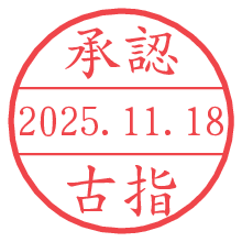オプションの「電子透かし」をチェックし[生成]すると、見た目には分からないように、UNIXタイムスタンプを識別情報としてPNG形式の日付印に埋め込みます。 日付スタンプメーカーの使い方「部署」「名前」は最大8文字まで入力が可能です。「スタンプの色」を選択し、[生成]ボタン押下で印影画像が更新され、背景を透明に設定したPNG形式とPDF形式の印影画像がリンクからダウンロードできます。 オプションの「電子透かし」は、その性格上日付印ととても相性の良い付加サービスです。 別ページの「タイムスタンプと電子透かし」でも詳しく解説しますが、このオプションを追加することで、日付印が生成された日時に確かにその印が存在していることが証明されます。 ![]() 古指さんの電子印鑑が作れます。社内でのデータ書類閲覧確認用など、認印的な使い方のできる電子印鑑が作れます。 ![]() 古代文字で落款印が作れます。「落款スタンプメーカー」で作品を引き立たせる落款印が作れます。