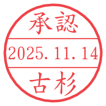 オプションの「電子透かし」をチェックし[生成]すると、見た目には分からないように、UNIXタイムスタンプを識別情報としてPNG形式の日付印に埋め込みます。 日付スタンプメーカーの使い方「部署」「名前」は最大8文字まで入力が可能です。「スタンプの色」を選択し、[生成]ボタン押下で印影画像が更新され、背景を透明に設定したPNG形式とPDF形式の印影画像がリンクからダウンロードできます。 オプションの「電子透かし」は、その性格上日付印ととても相性の良い付加サービスです。 別ページの「タイムスタンプと電子透かし」でも詳しく解説しますが、このオプションを追加することで、日付印が生成された日時に確かにその印が存在していることが証明されます。 ![]() 古杉さんの電子印鑑が作れます。社内でのデータ書類閲覧確認用など、認印的な使い方のできる電子印鑑が作れます。 ![]() 古代文字で落款印が作れます。「落款スタンプメーカー」で作品を引き立たせる落款印が作れます。