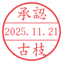 オプションの「電子透かし」をチェックし[生成]すると、見た目には分からないように、UNIXタイムスタンプを識別情報としてPNG形式の日付印に埋め込みます。 日付スタンプメーカーの使い方「部署」「名前」は最大8文字まで入力が可能です。「スタンプの色」を選択し、[生成]ボタン押下で印影画像が更新され、背景を透明に設定したPNG形式とPDF形式の印影画像がリンクからダウンロードできます。 オプションの「電子透かし」は、その性格上日付印ととても相性の良い付加サービスです。 別ページの「タイムスタンプと電子透かし」でも詳しく解説しますが、このオプションを追加することで、日付印が生成された日時に確かにその印が存在していることが証明されます。 ![]() 古枝さんの電子印鑑が作れます。社内でのデータ書類閲覧確認用など、認印的な使い方のできる電子印鑑が作れます。 ![]() 古代文字で落款印が作れます。「落款スタンプメーカー」で作品を引き立たせる落款印が作れます。
