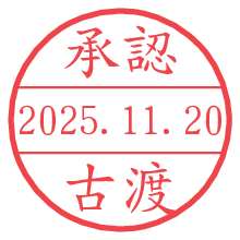 オプションの「電子透かし」をチェックし[生成]すると、見た目には分からないように、UNIXタイムスタンプを識別情報としてPNG形式の日付印に埋め込みます。 日付スタンプメーカーの使い方「部署」「名前」は最大8文字まで入力が可能です。「スタンプの色」を選択し、[生成]ボタン押下で印影画像が更新され、背景を透明に設定したPNG形式とPDF形式の印影画像がリンクからダウンロードできます。 オプションの「電子透かし」は、その性格上日付印ととても相性の良い付加サービスです。 別ページの「タイムスタンプと電子透かし」でも詳しく解説しますが、このオプションを追加することで、日付印が生成された日時に確かにその印が存在していることが証明されます。 ![]() 古渡さんの電子印鑑が作れます。社内でのデータ書類閲覧確認用など、認印的な使い方のできる電子印鑑が作れます。 ![]() 古代文字で落款印が作れます。「落款スタンプメーカー」で作品を引き立たせる落款印が作れます。