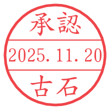 オプションの「電子透かし」をチェックし[生成]すると、見た目には分からないように、UNIXタイムスタンプを識別情報としてPNG形式の日付印に埋め込みます。 日付スタンプメーカーの使い方「部署」「名前」は最大8文字まで入力が可能です。「スタンプの色」を選択し、[生成]ボタン押下で印影画像が更新され、背景を透明に設定したPNG形式とPDF形式の印影画像がリンクからダウンロードできます。 オプションの「電子透かし」は、その性格上日付印ととても相性の良い付加サービスです。 別ページの「タイムスタンプと電子透かし」でも詳しく解説しますが、このオプションを追加することで、日付印が生成された日時に確かにその印が存在していることが証明されます。 ![]() 古石さんの電子印鑑が作れます。社内でのデータ書類閲覧確認用など、認印的な使い方のできる電子印鑑が作れます。 ![]() 古代文字で落款印が作れます。「落款スタンプメーカー」で作品を引き立たせる落款印が作れます。