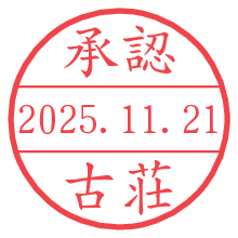 オプションの「電子透かし」をチェックし[生成]すると、見た目には分からないように、UNIXタイムスタンプを識別情報としてPNG形式の日付印に埋め込みます。 日付スタンプメーカーの使い方「部署」「名前」は最大8文字まで入力が可能です。「スタンプの色」を選択し、[生成]ボタン押下で印影画像が更新され、背景を透明に設定したPNG形式とPDF形式の印影画像がリンクからダウンロードできます。 オプションの「電子透かし」は、その性格上日付印ととても相性の良い付加サービスです。 別ページの「タイムスタンプと電子透かし」でも詳しく解説しますが、このオプションを追加することで、日付印が生成された日時に確かにその印が存在していることが証明されます。 ![]() 古荘さんの電子印鑑が作れます。社内でのデータ書類閲覧確認用など、認印的な使い方のできる電子印鑑が作れます。 ![]() 古代文字で落款印が作れます。「落款スタンプメーカー」で作品を引き立たせる落款印が作れます。