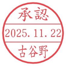 オプションの「電子透かし」をチェックし[生成]すると、見た目には分からないように、UNIXタイムスタンプを識別情報としてPNG形式の日付印に埋め込みます。 日付スタンプメーカーの使い方「部署」「名前」は最大8文字まで入力が可能です。「スタンプの色」を選択し、[生成]ボタン押下で印影画像が更新され、背景を透明に設定したPNG形式とPDF形式の印影画像がリンクからダウンロードできます。 オプションの「電子透かし」は、その性格上日付印ととても相性の良い付加サービスです。 別ページの「タイムスタンプと電子透かし」でも詳しく解説しますが、このオプションを追加することで、日付印が生成された日時に確かにその印が存在していることが証明されます。 ![]() 古谷野さんの電子印鑑が作れます。社内でのデータ書類閲覧確認用など、認印的な使い方のできる電子印鑑が作れます。 ![]() 古代文字で落款印が作れます。「落款スタンプメーカー」で作品を引き立たせる落款印が作れます。
