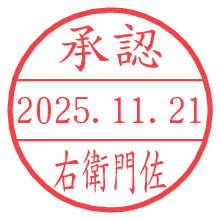 オプションの「電子透かし」をチェックし[生成]すると、見た目には分からないように、UNIXタイムスタンプを識別情報としてPNG形式の日付印に埋め込みます。 日付スタンプメーカーの使い方「部署」「名前」は最大8文字まで入力が可能です。「スタンプの色」を選択し、[生成]ボタン押下で印影画像が更新され、背景を透明に設定したPNG形式とPDF形式の印影画像がリンクからダウンロードできます。 オプションの「電子透かし」は、その性格上日付印ととても相性の良い付加サービスです。 別ページの「タイムスタンプと電子透かし」でも詳しく解説しますが、このオプションを追加することで、日付印が生成された日時に確かにその印が存在していることが証明されます。 ![]() 右衛門佐さんの電子印鑑が作れます。社内でのデータ書類閲覧確認用など、認印的な使い方のできる電子印鑑が作れます。 ![]() 古代文字で落款印が作れます。「落款スタンプメーカー」で作品を引き立たせる落款印が作れます。