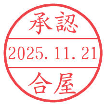 オプションの「電子透かし」をチェックし[生成]すると、見た目には分からないように、UNIXタイムスタンプを識別情報としてPNG形式の日付印に埋め込みます。 日付スタンプメーカーの使い方「部署」「名前」は最大8文字まで入力が可能です。「スタンプの色」を選択し、[生成]ボタン押下で印影画像が更新され、背景を透明に設定したPNG形式とPDF形式の印影画像がリンクからダウンロードできます。 オプションの「電子透かし」は、その性格上日付印ととても相性の良い付加サービスです。 別ページの「タイムスタンプと電子透かし」でも詳しく解説しますが、このオプションを追加することで、日付印が生成された日時に確かにその印が存在していることが証明されます。 ![]() 合屋さんの電子印鑑が作れます。社内でのデータ書類閲覧確認用など、認印的な使い方のできる電子印鑑が作れます。 ![]() 古代文字で落款印が作れます。「落款スタンプメーカー」で作品を引き立たせる落款印が作れます。