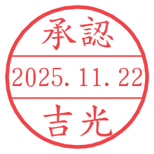 オプションの「電子透かし」をチェックし[生成]すると、見た目には分からないように、UNIXタイムスタンプを識別情報としてPNG形式の日付印に埋め込みます。 日付スタンプメーカーの使い方「部署」「名前」は最大8文字まで入力が可能です。「スタンプの色」を選択し、[生成]ボタン押下で印影画像が更新され、背景を透明に設定したPNG形式とPDF形式の印影画像がリンクからダウンロードできます。 オプションの「電子透かし」は、その性格上日付印ととても相性の良い付加サービスです。 別ページの「タイムスタンプと電子透かし」でも詳しく解説しますが、このオプションを追加することで、日付印が生成された日時に確かにその印が存在していることが証明されます。 ![]() 吉光さんの電子印鑑が作れます。社内でのデータ書類閲覧確認用など、認印的な使い方のできる電子印鑑が作れます。 ![]() 古代文字で落款印が作れます。「落款スタンプメーカー」で作品を引き立たせる落款印が作れます。