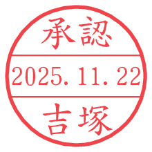 オプションの「電子透かし」をチェックし[生成]すると、見た目には分からないように、UNIXタイムスタンプを識別情報としてPNG形式の日付印に埋め込みます。 日付スタンプメーカーの使い方「部署」「名前」は最大8文字まで入力が可能です。「スタンプの色」を選択し、[生成]ボタン押下で印影画像が更新され、背景を透明に設定したPNG形式とPDF形式の印影画像がリンクからダウンロードできます。 オプションの「電子透かし」は、その性格上日付印ととても相性の良い付加サービスです。 別ページの「タイムスタンプと電子透かし」でも詳しく解説しますが、このオプションを追加することで、日付印が生成された日時に確かにその印が存在していることが証明されます。 ![]() 吉塚さんの電子印鑑が作れます。社内でのデータ書類閲覧確認用など、認印的な使い方のできる電子印鑑が作れます。 ![]() 古代文字で落款印が作れます。「落款スタンプメーカー」で作品を引き立たせる落款印が作れます。