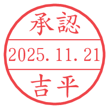オプションの「電子透かし」をチェックし[生成]すると、見た目には分からないように、UNIXタイムスタンプを識別情報としてPNG形式の日付印に埋め込みます。 日付スタンプメーカーの使い方「部署」「名前」は最大8文字まで入力が可能です。「スタンプの色」を選択し、[生成]ボタン押下で印影画像が更新され、背景を透明に設定したPNG形式とPDF形式の印影画像がリンクからダウンロードできます。 オプションの「電子透かし」は、その性格上日付印ととても相性の良い付加サービスです。 別ページの「タイムスタンプと電子透かし」でも詳しく解説しますが、このオプションを追加することで、日付印が生成された日時に確かにその印が存在していることが証明されます。 ![]() 吉平さんの電子印鑑が作れます。社内でのデータ書類閲覧確認用など、認印的な使い方のできる電子印鑑が作れます。 ![]() 古代文字で落款印が作れます。「落款スタンプメーカー」で作品を引き立たせる落款印が作れます。