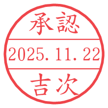 オプションの「電子透かし」をチェックし[生成]すると、見た目には分からないように、UNIXタイムスタンプを識別情報としてPNG形式の日付印に埋め込みます。 日付スタンプメーカーの使い方「部署」「名前」は最大8文字まで入力が可能です。「スタンプの色」を選択し、[生成]ボタン押下で印影画像が更新され、背景を透明に設定したPNG形式とPDF形式の印影画像がリンクからダウンロードできます。 オプションの「電子透かし」は、その性格上日付印ととても相性の良い付加サービスです。 別ページの「タイムスタンプと電子透かし」でも詳しく解説しますが、このオプションを追加することで、日付印が生成された日時に確かにその印が存在していることが証明されます。 ![]() 吉次さんの電子印鑑が作れます。社内でのデータ書類閲覧確認用など、認印的な使い方のできる電子印鑑が作れます。 ![]() 古代文字で落款印が作れます。「落款スタンプメーカー」で作品を引き立たせる落款印が作れます。