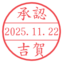 オプションの「電子透かし」をチェックし[生成]すると、見た目には分からないように、UNIXタイムスタンプを識別情報としてPNG形式の日付印に埋め込みます。 日付スタンプメーカーの使い方「部署」「名前」は最大8文字まで入力が可能です。「スタンプの色」を選択し、[生成]ボタン押下で印影画像が更新され、背景を透明に設定したPNG形式とPDF形式の印影画像がリンクからダウンロードできます。 オプションの「電子透かし」は、その性格上日付印ととても相性の良い付加サービスです。 別ページの「タイムスタンプと電子透かし」でも詳しく解説しますが、このオプションを追加することで、日付印が生成された日時に確かにその印が存在していることが証明されます。 ![]() 吉賀さんの電子印鑑が作れます。社内でのデータ書類閲覧確認用など、認印的な使い方のできる電子印鑑が作れます。 ![]() 古代文字で落款印が作れます。「落款スタンプメーカー」で作品を引き立たせる落款印が作れます。