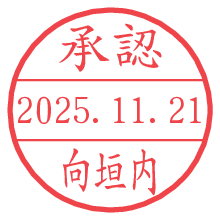 オプションの「電子透かし」をチェックし[生成]すると、見た目には分からないように、UNIXタイムスタンプを識別情報としてPNG形式の日付印に埋め込みます。 日付スタンプメーカーの使い方「部署」「名前」は最大8文字まで入力が可能です。「スタンプの色」を選択し、[生成]ボタン押下で印影画像が更新され、背景を透明に設定したPNG形式とPDF形式の印影画像がリンクからダウンロードできます。 オプションの「電子透かし」は、その性格上日付印ととても相性の良い付加サービスです。 別ページの「タイムスタンプと電子透かし」でも詳しく解説しますが、このオプションを追加することで、日付印が生成された日時に確かにその印が存在していることが証明されます。 ![]() 向垣内さんの電子印鑑が作れます。社内でのデータ書類閲覧確認用など、認印的な使い方のできる電子印鑑が作れます。 ![]() 古代文字で落款印が作れます。「落款スタンプメーカー」で作品を引き立たせる落款印が作れます。