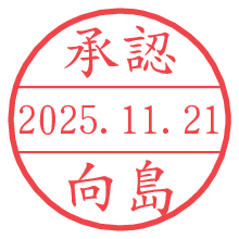 オプションの「電子透かし」をチェックし[生成]すると、見た目には分からないように、UNIXタイムスタンプを識別情報としてPNG形式の日付印に埋め込みます。 日付スタンプメーカーの使い方「部署」「名前」は最大8文字まで入力が可能です。「スタンプの色」を選択し、[生成]ボタン押下で印影画像が更新され、背景を透明に設定したPNG形式とPDF形式の印影画像がリンクからダウンロードできます。 オプションの「電子透かし」は、その性格上日付印ととても相性の良い付加サービスです。 別ページの「タイムスタンプと電子透かし」でも詳しく解説しますが、このオプションを追加することで、日付印が生成された日時に確かにその印が存在していることが証明されます。 ![]() 向島さんの電子印鑑が作れます。社内でのデータ書類閲覧確認用など、認印的な使い方のできる電子印鑑が作れます。 ![]() 古代文字で落款印が作れます。「落款スタンプメーカー」で作品を引き立たせる落款印が作れます。