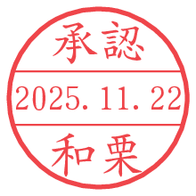 オプションの「電子透かし」をチェックし[生成]すると、見た目には分からないように、UNIXタイムスタンプを識別情報としてPNG形式の日付印に埋め込みます。 日付スタンプメーカーの使い方「部署」「名前」は最大8文字まで入力が可能です。「スタンプの色」を選択し、[生成]ボタン押下で印影画像が更新され、背景を透明に設定したPNG形式とPDF形式の印影画像がリンクからダウンロードできます。 オプションの「電子透かし」は、その性格上日付印ととても相性の良い付加サービスです。 別ページの「タイムスタンプと電子透かし」でも詳しく解説しますが、このオプションを追加することで、日付印が生成された日時に確かにその印が存在していることが証明されます。 ![]() 和栗さんの電子印鑑が作れます。社内でのデータ書類閲覧確認用など、認印的な使い方のできる電子印鑑が作れます。 ![]() 古代文字で落款印が作れます。「落款スタンプメーカー」で作品を引き立たせる落款印が作れます。