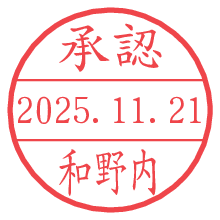 オプションの「電子透かし」をチェックし[生成]すると、見た目には分からないように、UNIXタイムスタンプを識別情報としてPNG形式の日付印に埋め込みます。 日付スタンプメーカーの使い方「部署」「名前」は最大8文字まで入力が可能です。「スタンプの色」を選択し、[生成]ボタン押下で印影画像が更新され、背景を透明に設定したPNG形式とPDF形式の印影画像がリンクからダウンロードできます。 オプションの「電子透かし」は、その性格上日付印ととても相性の良い付加サービスです。 別ページの「タイムスタンプと電子透かし」でも詳しく解説しますが、このオプションを追加することで、日付印が生成された日時に確かにその印が存在していることが証明されます。 ![]() 和野内さんの電子印鑑が作れます。社内でのデータ書類閲覧確認用など、認印的な使い方のできる電子印鑑が作れます。 ![]() 古代文字で落款印が作れます。「落款スタンプメーカー」で作品を引き立たせる落款印が作れます。