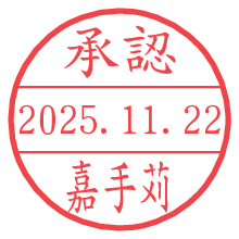 オプションの「電子透かし」をチェックし[生成]すると、見た目には分からないように、UNIXタイムスタンプを識別情報としてPNG形式の日付印に埋め込みます。 日付スタンプメーカーの使い方「部署」「名前」は最大8文字まで入力が可能です。「スタンプの色」を選択し、[生成]ボタン押下で印影画像が更新され、背景を透明に設定したPNG形式とPDF形式の印影画像がリンクからダウンロードできます。 オプションの「電子透かし」は、その性格上日付印ととても相性の良い付加サービスです。 別ページの「タイムスタンプと電子透かし」でも詳しく解説しますが、このオプションを追加することで、日付印が生成された日時に確かにその印が存在していることが証明されます。 ![]() 嘉手苅さんの電子印鑑が作れます。社内でのデータ書類閲覧確認用など、認印的な使い方のできる電子印鑑が作れます。 ![]() 古代文字で落款印が作れます。「落款スタンプメーカー」で作品を引き立たせる落款印が作れます。