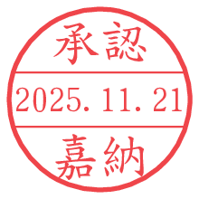 オプションの「電子透かし」をチェックし[生成]すると、見た目には分からないように、UNIXタイムスタンプを識別情報としてPNG形式の日付印に埋め込みます。 日付スタンプメーカーの使い方「部署」「名前」は最大8文字まで入力が可能です。「スタンプの色」を選択し、[生成]ボタン押下で印影画像が更新され、背景を透明に設定したPNG形式とPDF形式の印影画像がリンクからダウンロードできます。 オプションの「電子透かし」は、その性格上日付印ととても相性の良い付加サービスです。 別ページの「タイムスタンプと電子透かし」でも詳しく解説しますが、このオプションを追加することで、日付印が生成された日時に確かにその印が存在していることが証明されます。 ![]() 嘉納さんの電子印鑑が作れます。社内でのデータ書類閲覧確認用など、認印的な使い方のできる電子印鑑が作れます。 ![]() 古代文字で落款印が作れます。「落款スタンプメーカー」で作品を引き立たせる落款印が作れます。