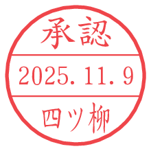 オプションの「電子透かし」をチェックし[生成]すると、見た目には分からないように、UNIXタイムスタンプを識別情報としてPNG形式の日付印に埋め込みます。 日付スタンプメーカーの使い方「部署」「名前」は最大8文字まで入力が可能です。「スタンプの色」を選択し、[生成]ボタン押下で印影画像が更新され、背景を透明に設定したPNG形式とPDF形式の印影画像がリンクからダウンロードできます。 オプションの「電子透かし」は、その性格上日付印ととても相性の良い付加サービスです。 別ページの「タイムスタンプと電子透かし」でも詳しく解説しますが、このオプションを追加することで、日付印が生成された日時に確かにその印が存在していることが証明されます。 ![]() 四ツ柳さんの電子印鑑が作れます。社内でのデータ書類閲覧確認用など、認印的な使い方のできる電子印鑑が作れます。 ![]() 古代文字で落款印が作れます。「落款スタンプメーカー」で作品を引き立たせる落款印が作れます。