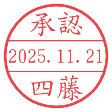オプションの「電子透かし」をチェックし[生成]すると、見た目には分からないように、UNIXタイムスタンプを識別情報としてPNG形式の日付印に埋め込みます。 日付スタンプメーカーの使い方「部署」「名前」は最大8文字まで入力が可能です。「スタンプの色」を選択し、[生成]ボタン押下で印影画像が更新され、背景を透明に設定したPNG形式とPDF形式の印影画像がリンクからダウンロードできます。 オプションの「電子透かし」は、その性格上日付印ととても相性の良い付加サービスです。 別ページの「タイムスタンプと電子透かし」でも詳しく解説しますが、このオプションを追加することで、日付印が生成された日時に確かにその印が存在していることが証明されます。 ![]() 四藤さんの電子印鑑が作れます。社内でのデータ書類閲覧確認用など、認印的な使い方のできる電子印鑑が作れます。 ![]() 古代文字で落款印が作れます。「落款スタンプメーカー」で作品を引き立たせる落款印が作れます。