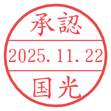 オプションの「電子透かし」をチェックし[生成]すると、見た目には分からないように、UNIXタイムスタンプを識別情報としてPNG形式の日付印に埋め込みます。 日付スタンプメーカーの使い方「部署」「名前」は最大8文字まで入力が可能です。「スタンプの色」を選択し、[生成]ボタン押下で印影画像が更新され、背景を透明に設定したPNG形式とPDF形式の印影画像がリンクからダウンロードできます。 オプションの「電子透かし」は、その性格上日付印ととても相性の良い付加サービスです。 別ページの「タイムスタンプと電子透かし」でも詳しく解説しますが、このオプションを追加することで、日付印が生成された日時に確かにその印が存在していることが証明されます。 ![]() 国光さんの電子印鑑が作れます。社内でのデータ書類閲覧確認用など、認印的な使い方のできる電子印鑑が作れます。 ![]() 古代文字で落款印が作れます。「落款スタンプメーカー」で作品を引き立たせる落款印が作れます。