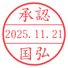 オプションの「電子透かし」をチェックし[生成]すると、見た目には分からないように、UNIXタイムスタンプを識別情報としてPNG形式の日付印に埋め込みます。 日付スタンプメーカーの使い方「部署」「名前」は最大8文字まで入力が可能です。「スタンプの色」を選択し、[生成]ボタン押下で印影画像が更新され、背景を透明に設定したPNG形式とPDF形式の印影画像がリンクからダウンロードできます。 オプションの「電子透かし」は、その性格上日付印ととても相性の良い付加サービスです。 別ページの「タイムスタンプと電子透かし」でも詳しく解説しますが、このオプションを追加することで、日付印が生成された日時に確かにその印が存在していることが証明されます。 ![]() 国弘さんの電子印鑑が作れます。社内でのデータ書類閲覧確認用など、認印的な使い方のできる電子印鑑が作れます。 ![]() 古代文字で落款印が作れます。「落款スタンプメーカー」で作品を引き立たせる落款印が作れます。