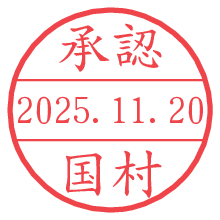 オプションの「電子透かし」をチェックし[生成]すると、見た目には分からないように、UNIXタイムスタンプを識別情報としてPNG形式の日付印に埋め込みます。 日付スタンプメーカーの使い方「部署」「名前」は最大8文字まで入力が可能です。「スタンプの色」を選択し、[生成]ボタン押下で印影画像が更新され、背景を透明に設定したPNG形式とPDF形式の印影画像がリンクからダウンロードできます。 オプションの「電子透かし」は、その性格上日付印ととても相性の良い付加サービスです。 別ページの「タイムスタンプと電子透かし」でも詳しく解説しますが、このオプションを追加することで、日付印が生成された日時に確かにその印が存在していることが証明されます。 ![]() 国村さんの電子印鑑が作れます。社内でのデータ書類閲覧確認用など、認印的な使い方のできる電子印鑑が作れます。 ![]() 古代文字で落款印が作れます。「落款スタンプメーカー」で作品を引き立たせる落款印が作れます。