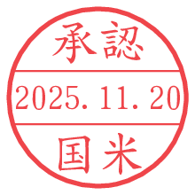 オプションの「電子透かし」をチェックし[生成]すると、見た目には分からないように、UNIXタイムスタンプを識別情報としてPNG形式の日付印に埋め込みます。 日付スタンプメーカーの使い方「部署」「名前」は最大8文字まで入力が可能です。「スタンプの色」を選択し、[生成]ボタン押下で印影画像が更新され、背景を透明に設定したPNG形式とPDF形式の印影画像がリンクからダウンロードできます。 オプションの「電子透かし」は、その性格上日付印ととても相性の良い付加サービスです。 別ページの「タイムスタンプと電子透かし」でも詳しく解説しますが、このオプションを追加することで、日付印が生成された日時に確かにその印が存在していることが証明されます。 ![]() 国米さんの電子印鑑が作れます。社内でのデータ書類閲覧確認用など、認印的な使い方のできる電子印鑑が作れます。 ![]() 古代文字で落款印が作れます。「落款スタンプメーカー」で作品を引き立たせる落款印が作れます。