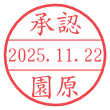 オプションの「電子透かし」をチェックし[生成]すると、見た目には分からないように、UNIXタイムスタンプを識別情報としてPNG形式の日付印に埋め込みます。 日付スタンプメーカーの使い方「部署」「名前」は最大8文字まで入力が可能です。「スタンプの色」を選択し、[生成]ボタン押下で印影画像が更新され、背景を透明に設定したPNG形式とPDF形式の印影画像がリンクからダウンロードできます。 オプションの「電子透かし」は、その性格上日付印ととても相性の良い付加サービスです。 別ページの「タイムスタンプと電子透かし」でも詳しく解説しますが、このオプションを追加することで、日付印が生成された日時に確かにその印が存在していることが証明されます。 ![]() 園原さんの電子印鑑が作れます。社内でのデータ書類閲覧確認用など、認印的な使い方のできる電子印鑑が作れます。 ![]() 古代文字で落款印が作れます。「落款スタンプメーカー」で作品を引き立たせる落款印が作れます。