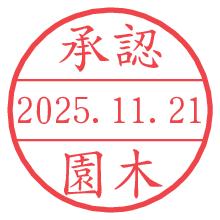 オプションの「電子透かし」をチェックし[生成]すると、見た目には分からないように、UNIXタイムスタンプを識別情報としてPNG形式の日付印に埋め込みます。 日付スタンプメーカーの使い方「部署」「名前」は最大8文字まで入力が可能です。「スタンプの色」を選択し、[生成]ボタン押下で印影画像が更新され、背景を透明に設定したPNG形式とPDF形式の印影画像がリンクからダウンロードできます。 オプションの「電子透かし」は、その性格上日付印ととても相性の良い付加サービスです。 別ページの「タイムスタンプと電子透かし」でも詳しく解説しますが、このオプションを追加することで、日付印が生成された日時に確かにその印が存在していることが証明されます。 ![]() 園木さんの電子印鑑が作れます。社内でのデータ書類閲覧確認用など、認印的な使い方のできる電子印鑑が作れます。 ![]() 古代文字で落款印が作れます。「落款スタンプメーカー」で作品を引き立たせる落款印が作れます。